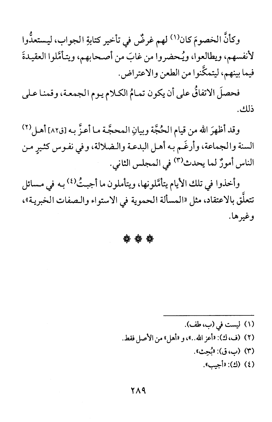 تتعلق بالاعتقاد، مثل " المسألة الحموية في الالشواء والصفات الحبرية "،