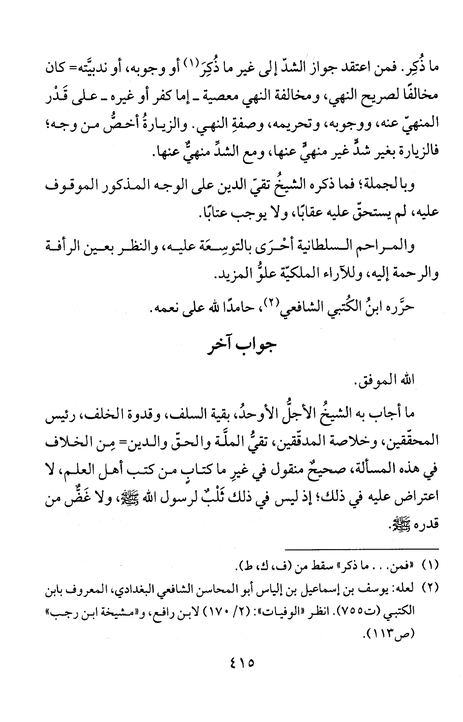ما اجاب به الشيخ الاجل الاوحد، بقية السلف، وقدوة الخلف، رئيس
