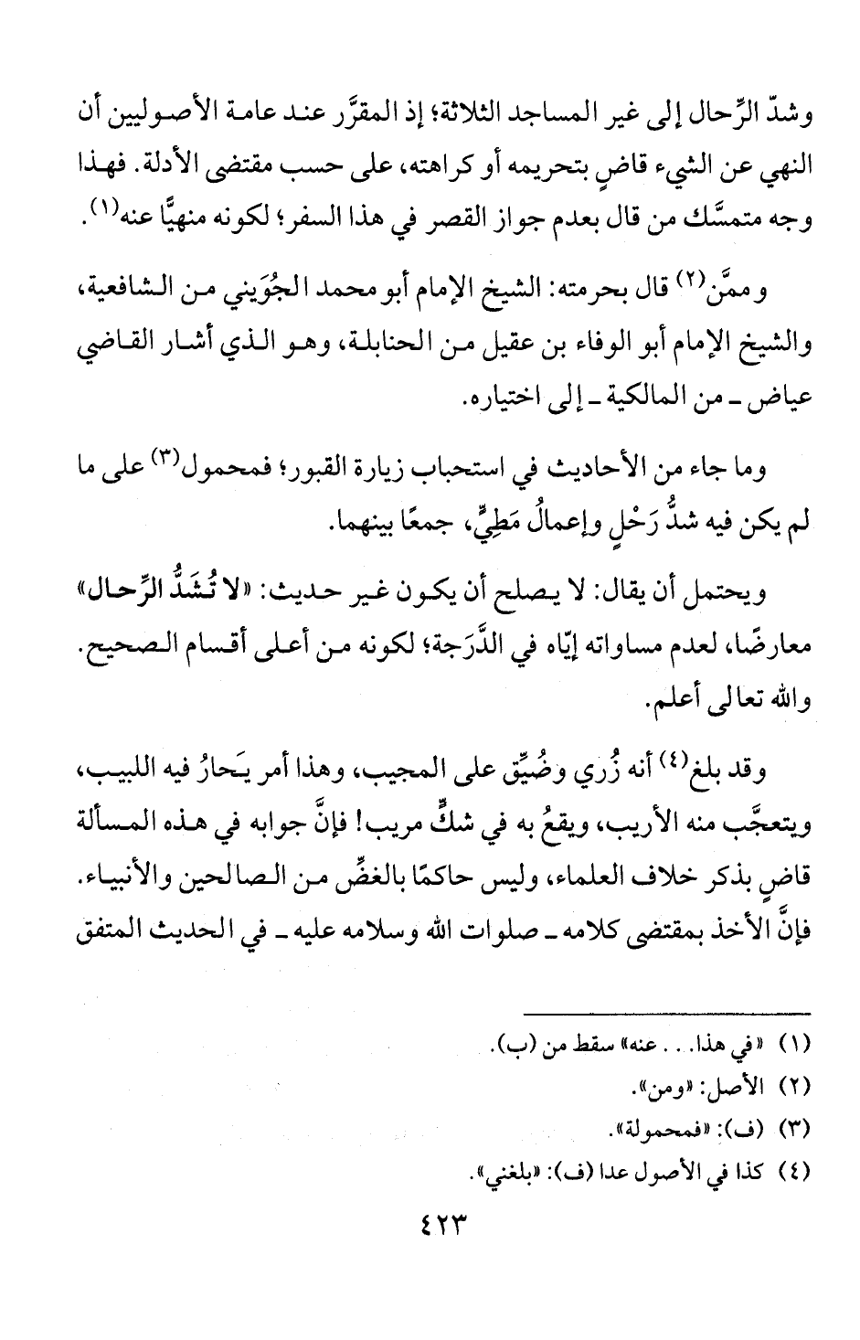 وشد الرحال إلى غير المساجد الثلاثة؛ إذ المقرر عند عامة الاصوليين ان