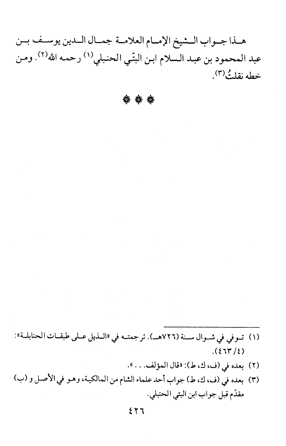 (1) توفي في شوال سنة (726 هـ). ترجمته في " الذيل على طبقات الحنابلة ":