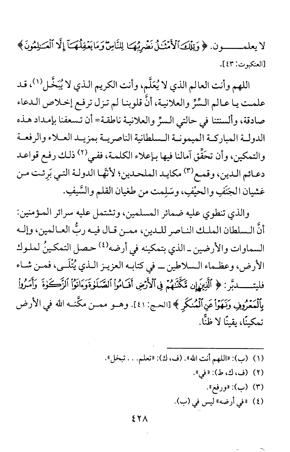 (1) (ب): " اللهم أنت الله ". (ف، ك): " تعلم. . . تبخل ".