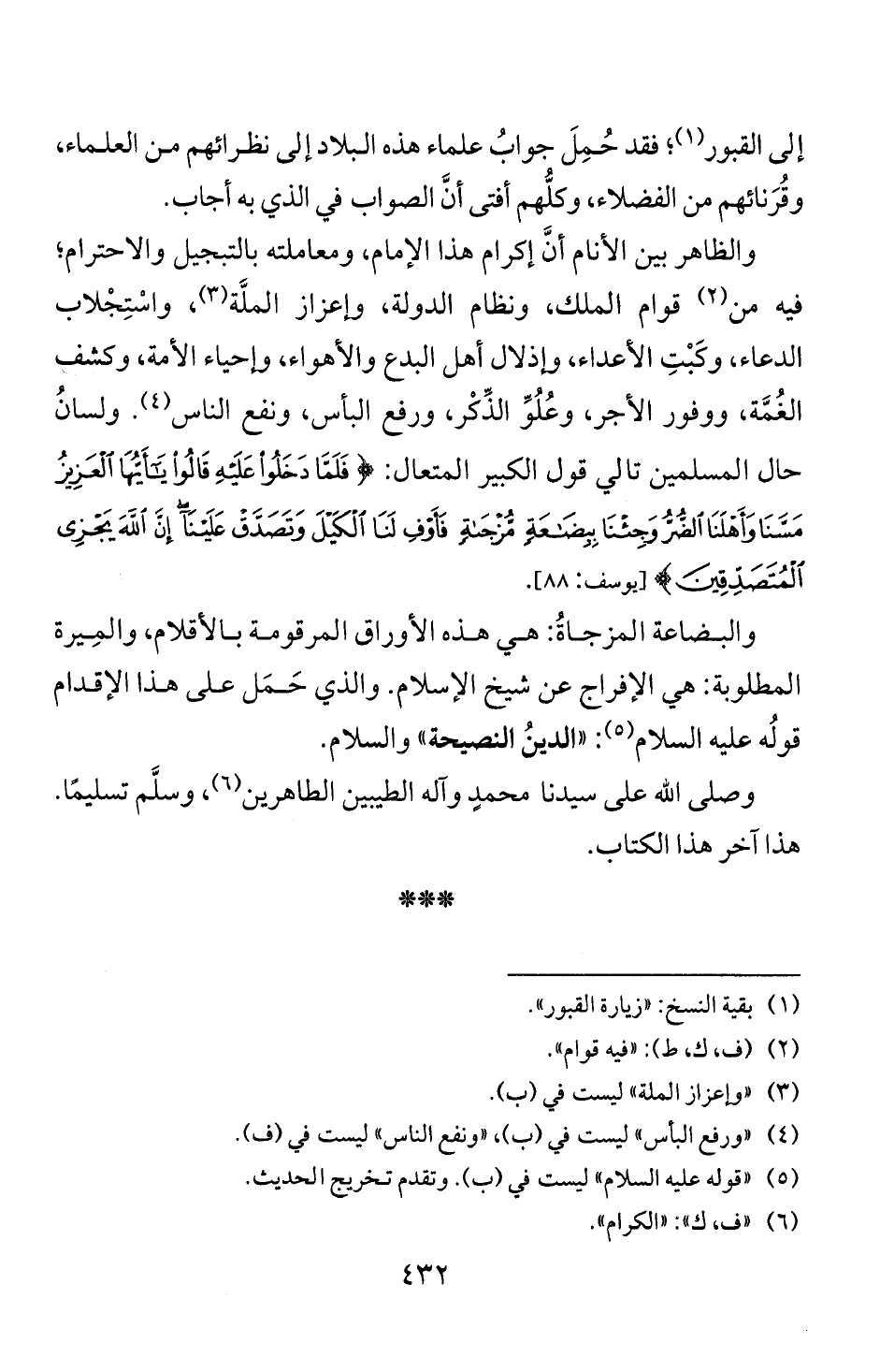 إلى القبور (1)؛ فقد حمل جواب علماء هذه البلاد إلى نظرائهم من العلماء،