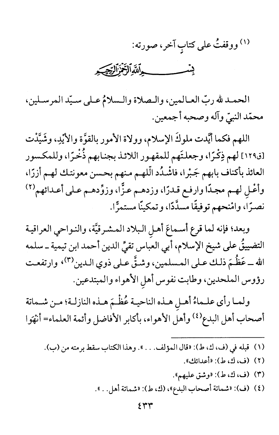 وبعد؛ فانه لما قرع أستماع أهل البلاد المشرقية، والنواحي العراقية