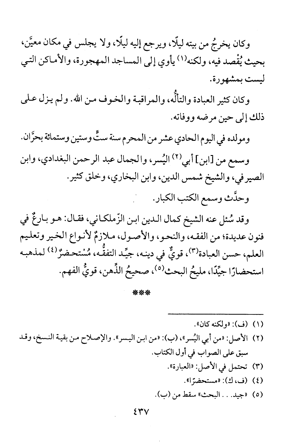 العلم، حسن العبادة (3)، قوي في دينه، جيد التفقه، مستحضر (4) لمذهبه