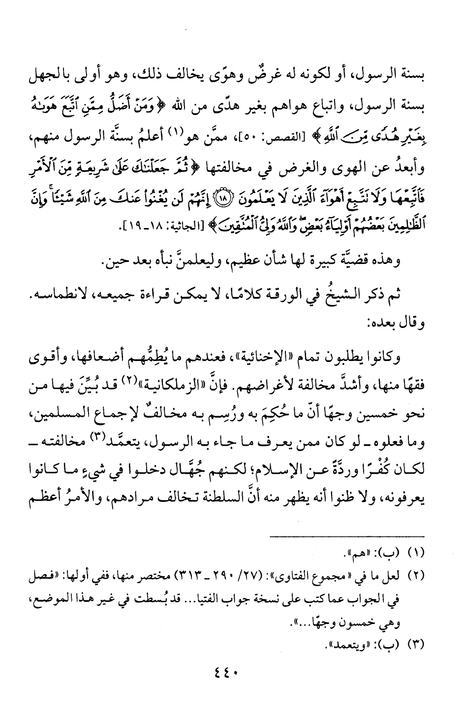 (2) لعل ما في " مجموع الفتاوى ": (27/ 0 29 - 313) مختصر منها، ففي اولها: " فصل