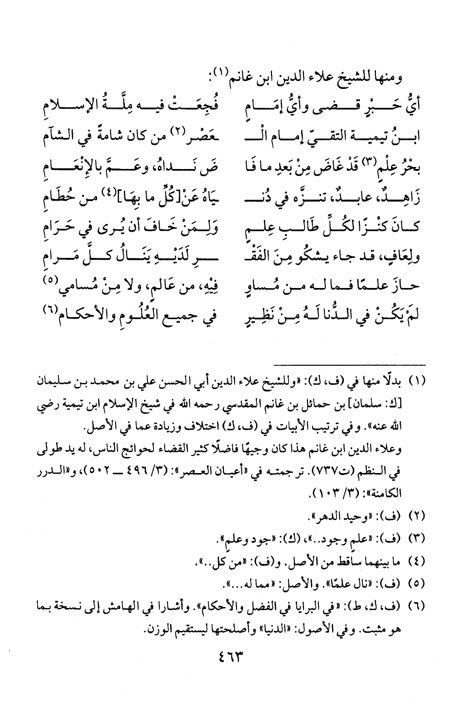 [ك: سلمان] بن حمائل بن غانم المقدسي رحمه الله في شيخ الاسلام ابن تيمية رضي