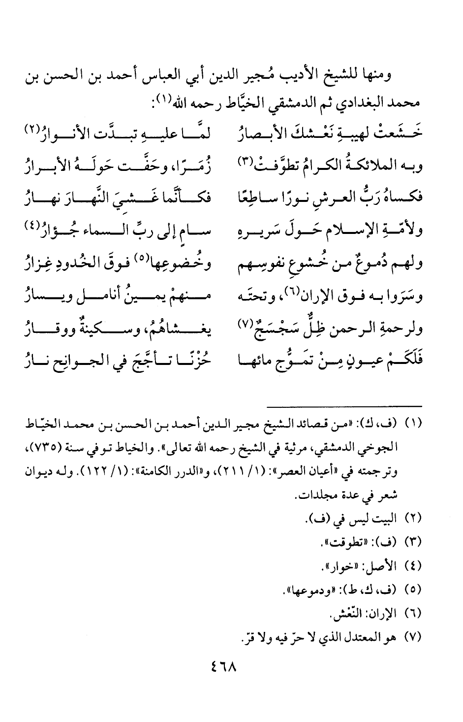 (1) (ف، ك): " من قصائد الشيخ مجير الدين أحمد بن الحسن بن محمد الخياط