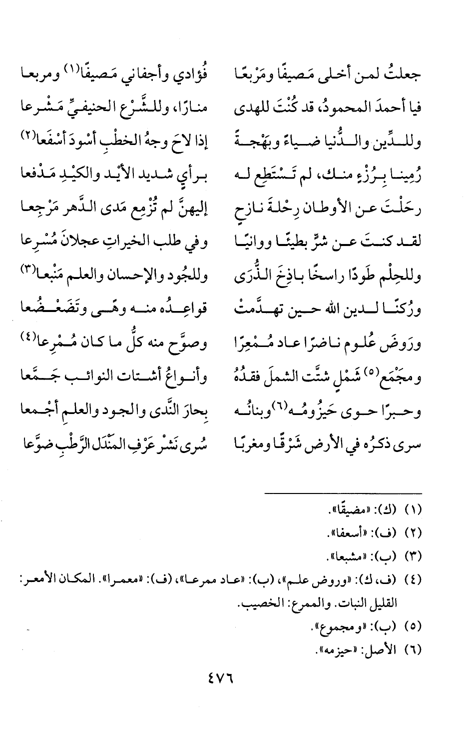(4) (ف، ك): " وروض علم "، (ب): " عاد ممرعا"، (ف): "معمرا". المكان الامعر:
