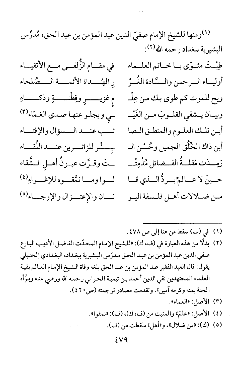 (1) ومنها للشيخ الامام صفي الدين عبد المؤمن بن عبد الحق، مدرس