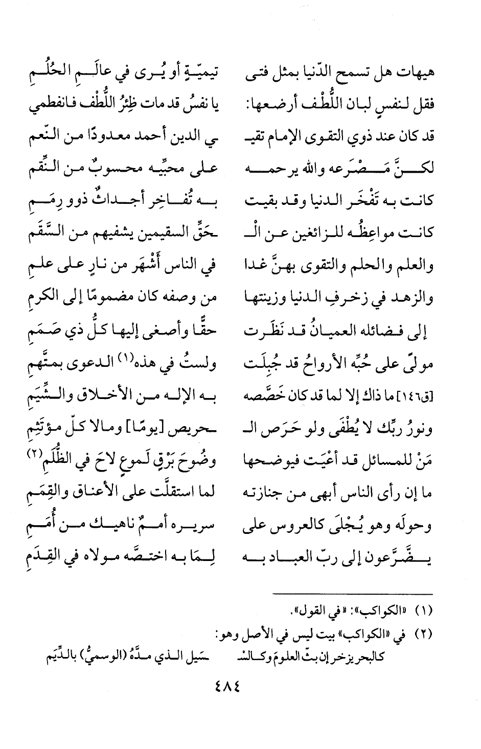 (2) في " الكواكب " بيت ليس في الاصل وهو: