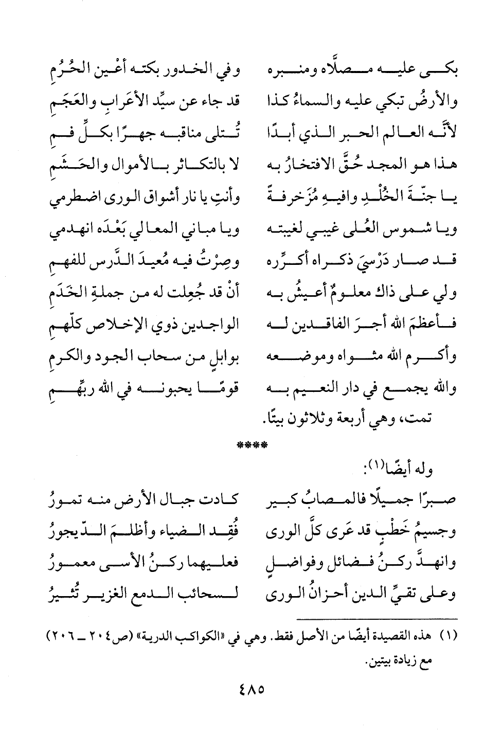 (1) هذه القصيدة أيضا من الاصل فقط. وهي في " الكواكب الدرية " (ص 4 0 2 - 6 0 2)