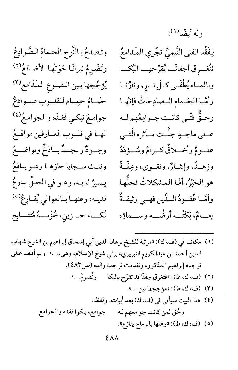 (1) مكانها في (ف، ك): " مرثية للشيخ برهان الدين أبي إسحاق إبراهيم بن الشيخ شهاب
