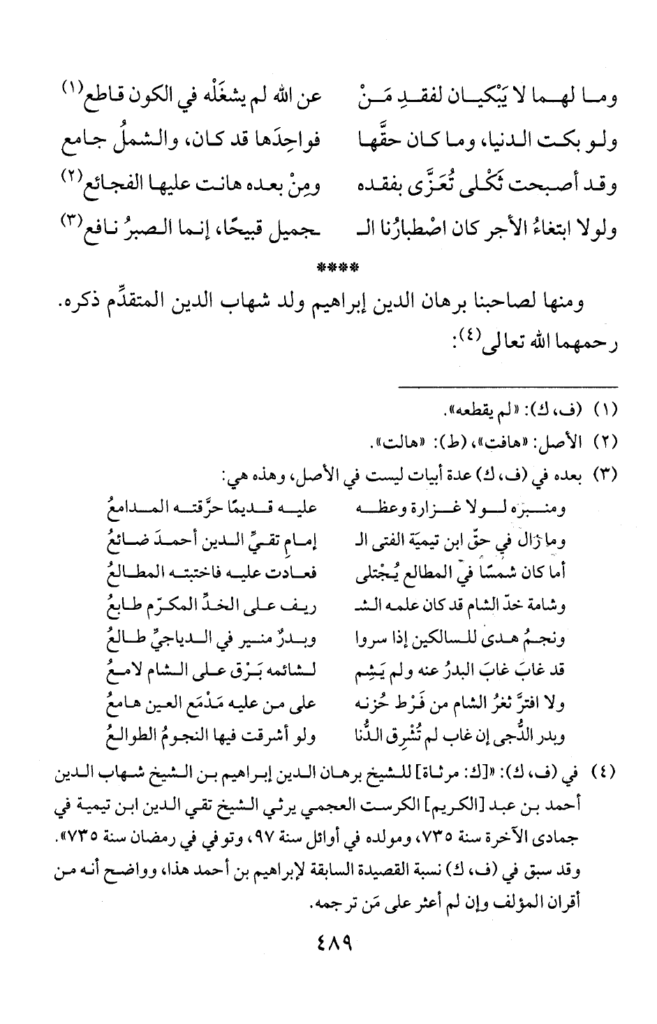 (4) في (ف، ك): " [ك: مرثاة] للشيخ برهان الدين إبراهيم بن الشيخ شهاب الدين