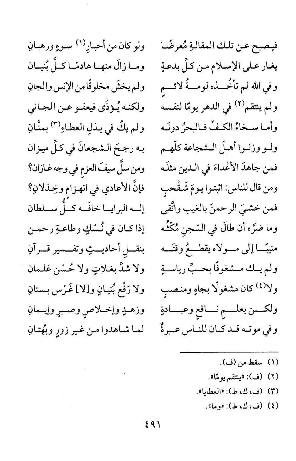 فيصبح عن تلك المقالة معرضا ... ولو كان من أحبار (1) سوء ورهبان