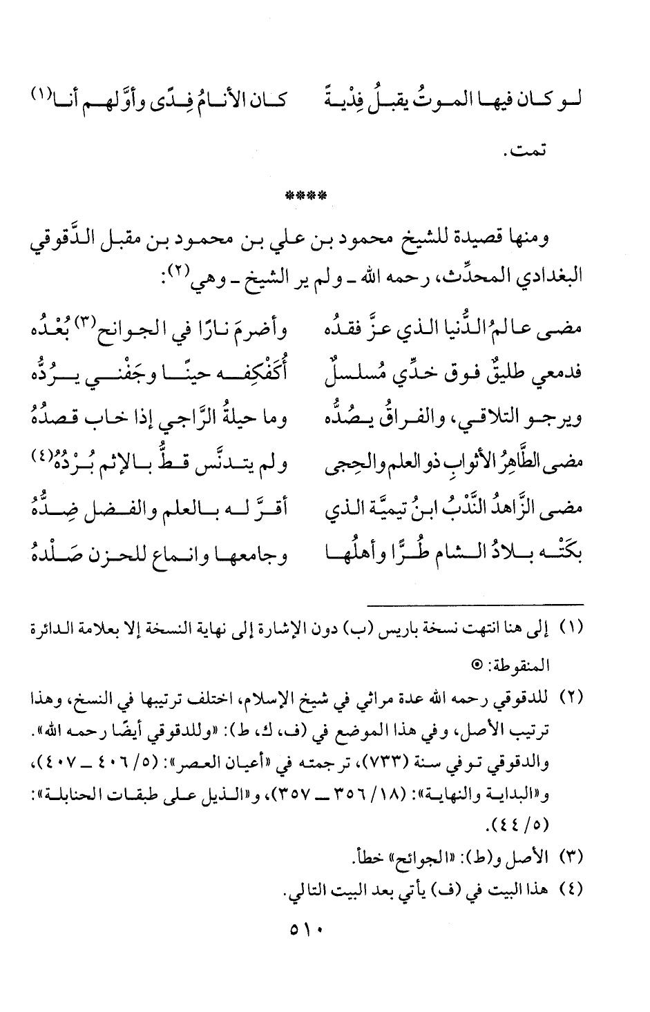 (2) للدقوقي رحمه الله عدة مراثي في شيخ الاسلام، اختلف ترتيبها في النسخ، وهذا