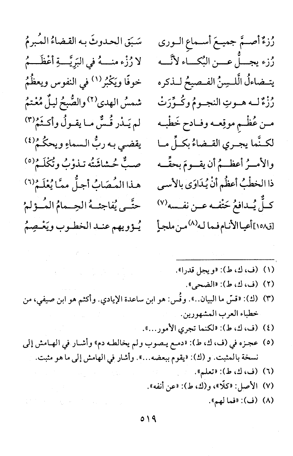 (3) (ك): " قش ما البيان .. ". وقس: هو ابن ساعدة الايادي. و 1 كثم هو ابن صيفي، من