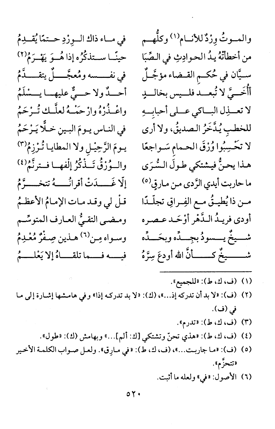 (5) (ف): "ما جاربت. . ."، (ف، ك، ط): " في مارق ". ولعل صواب الكلمة الاخيو