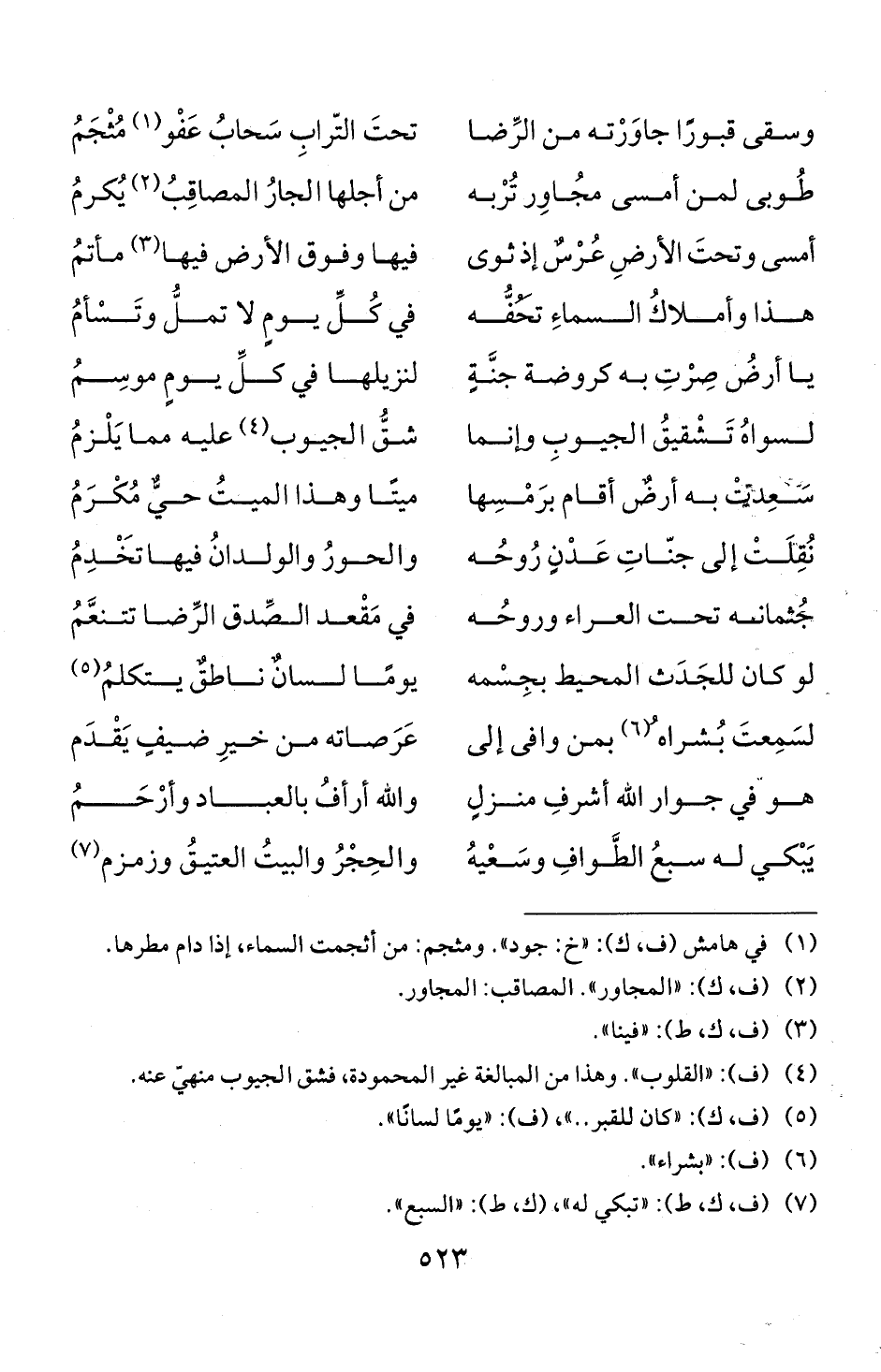 (7) (ف، ك، ط): "تبكي له"، (ك، ط): "السبع".