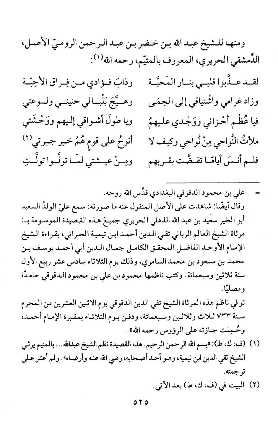 (ف، ك، ط): "بسم الله الرحمن الرحيم. هذه القصيدة نظم الشيخ عبدالله. . . بالمتيم يرثي