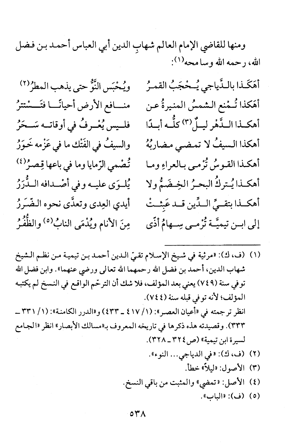 شهاب الدين، أحمد بن فضل الله رحمهما الله تعالى ورضي عنهما". وابن فضل الله