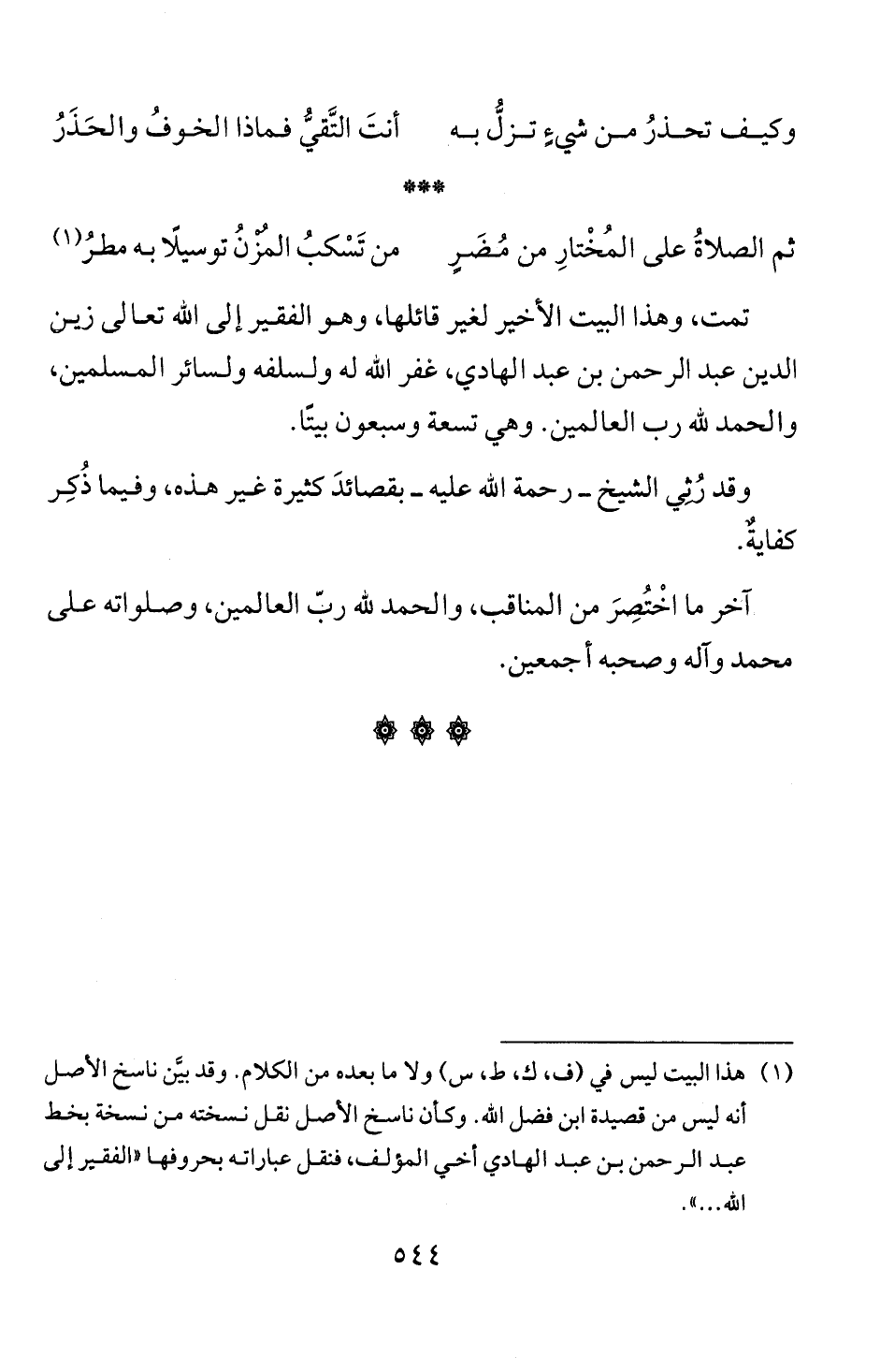 عبد الرحمن بن عبد الهادي أخي المؤلف، فنقل عباراته بحروفها "الفقير إلى