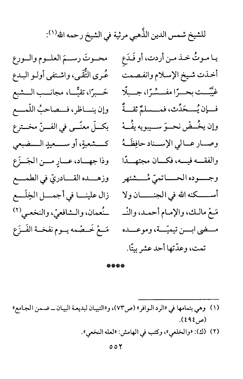 (1) وهي بتمامها في " الرد الوافر" (ص 73)، و" التبيان لبديعة البيان - ضمن ا لجامع"