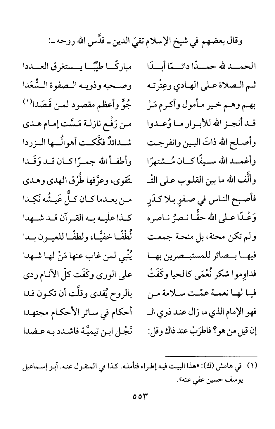 وقال بعضهم في شيخ الاسلام تقي الدين - قدس الله روحه -: