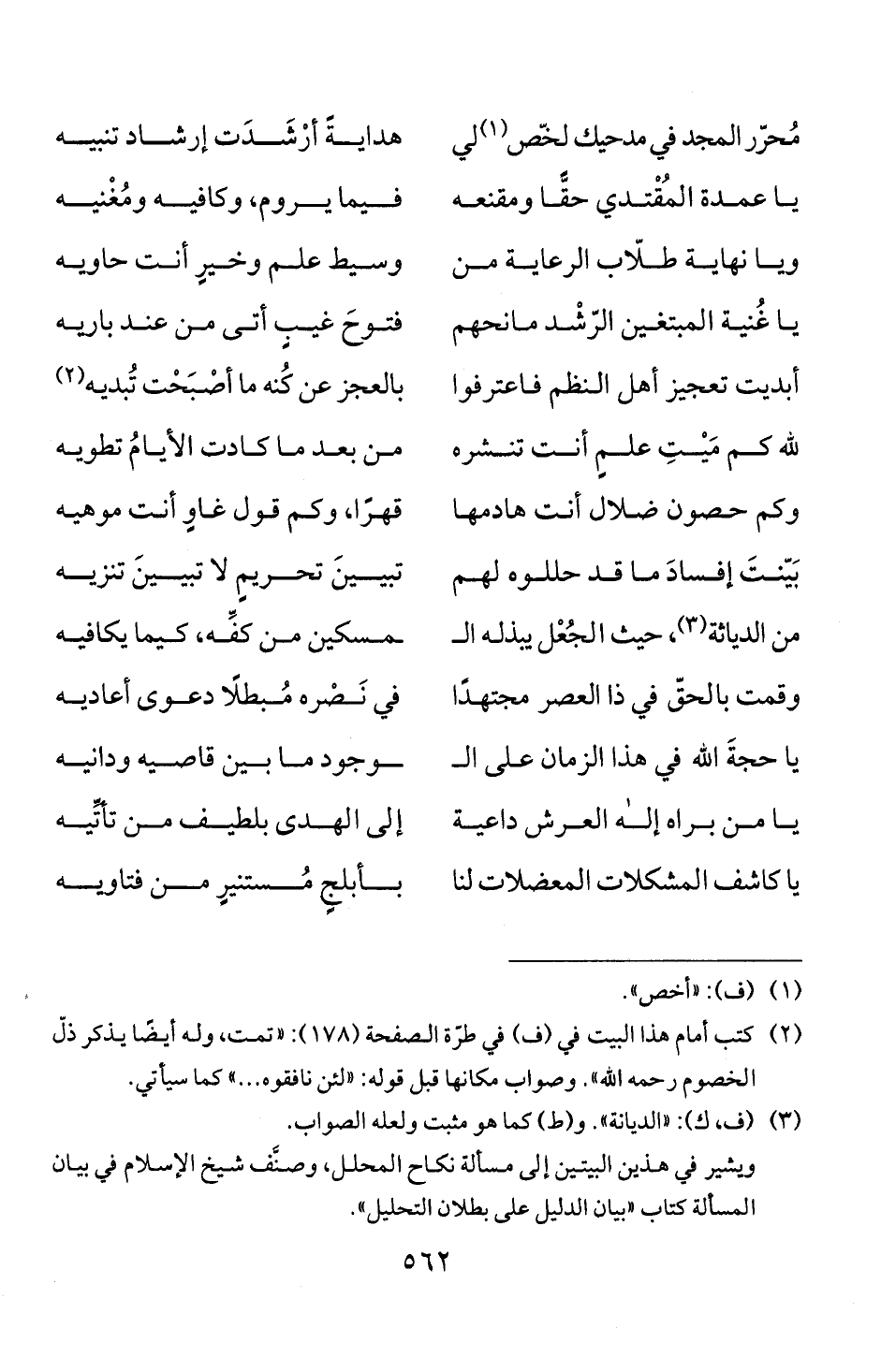 ويشير في هذين البيتين إلى مسالة نكاج المحلل، وصنف شيخ الاسلام في بيان