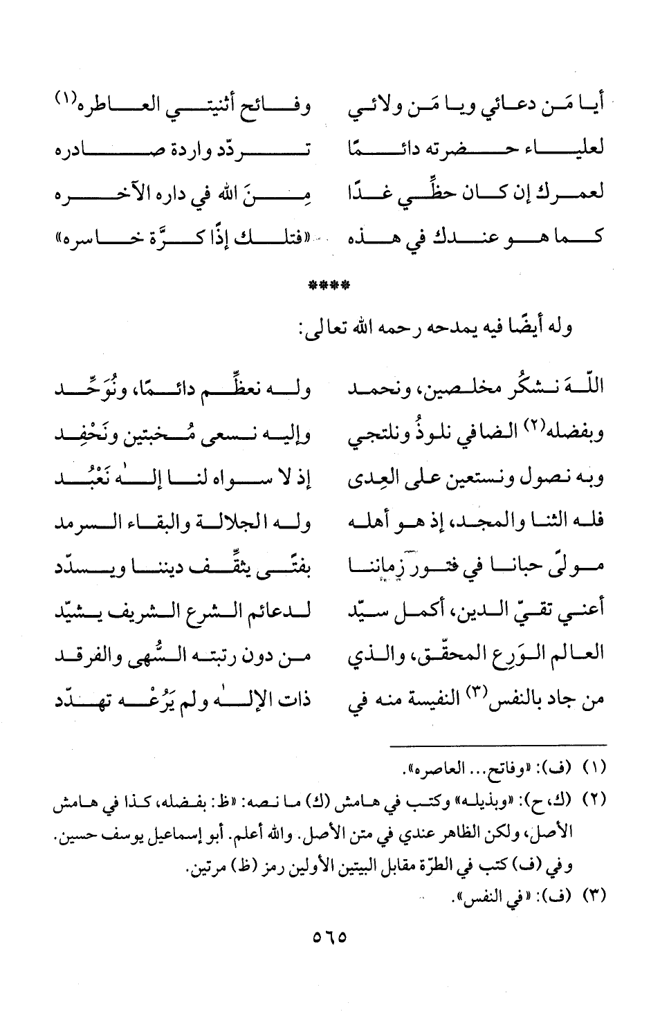 (2) (ك، ح): " وبذيله" وكتب في هامش (ك) ما نصه: " ظ: بفضله، كذا في هامش