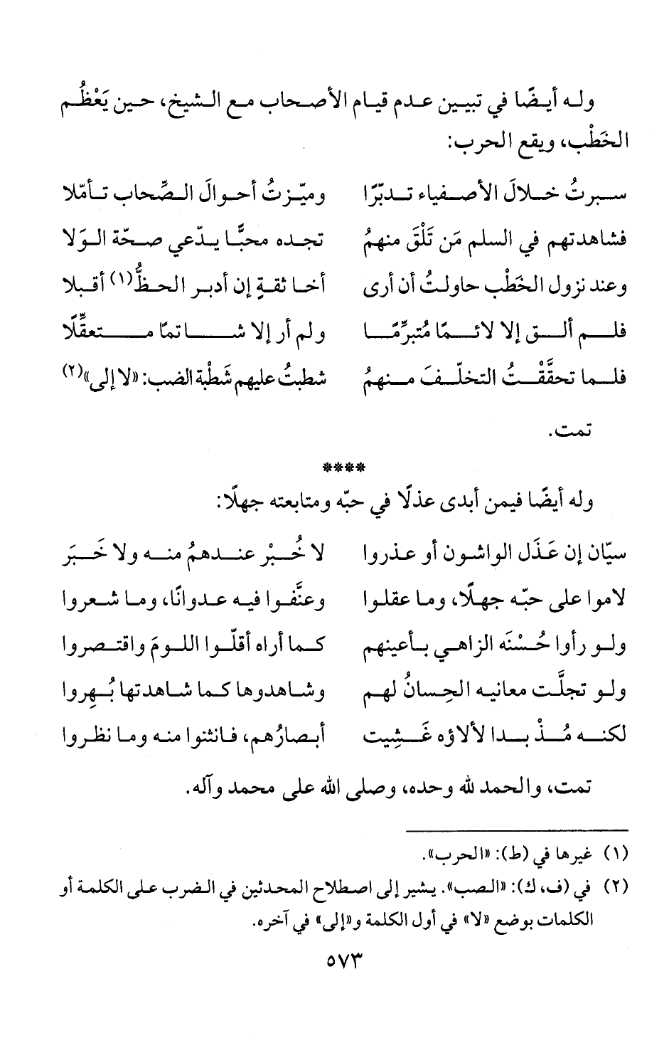 سبرت خلال الاصفياء تدبرا وميزت أحوال الصحاب تاملا