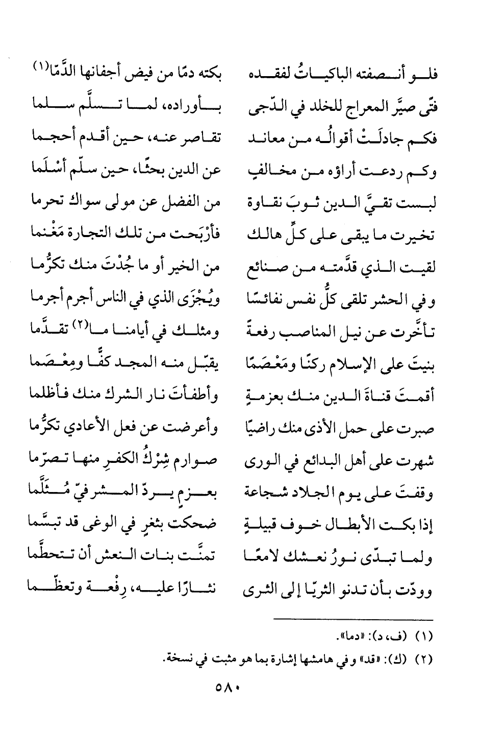 (2) (ك): "قد" وفي هامشها إشارة بما هو مثبت في نسخة.
