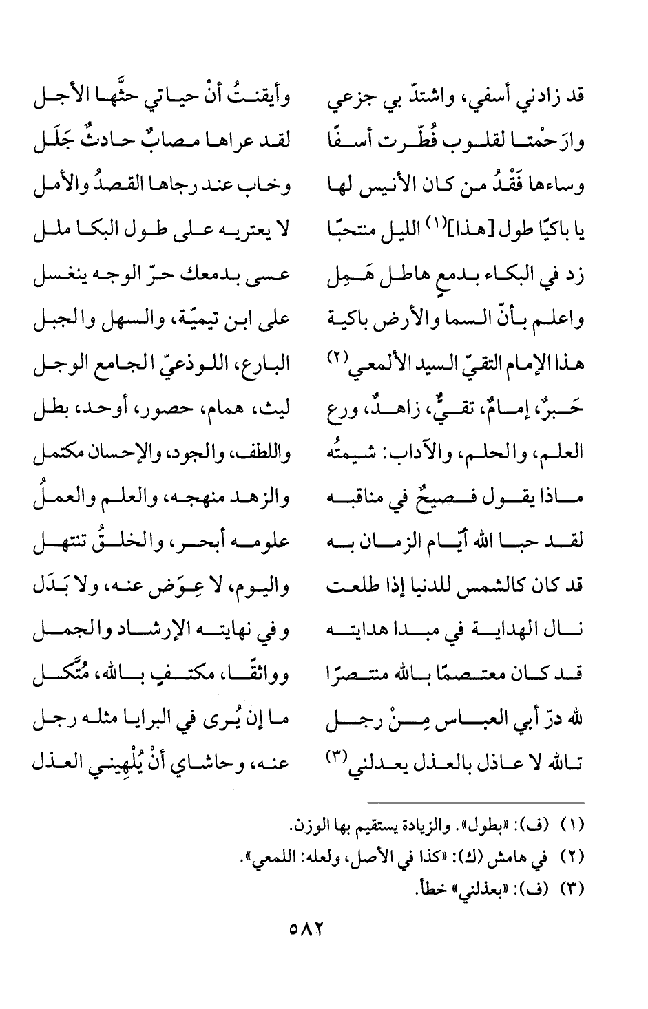 (1) (ف): "بطول ". و الزيادة يستقيم بها الوزن.