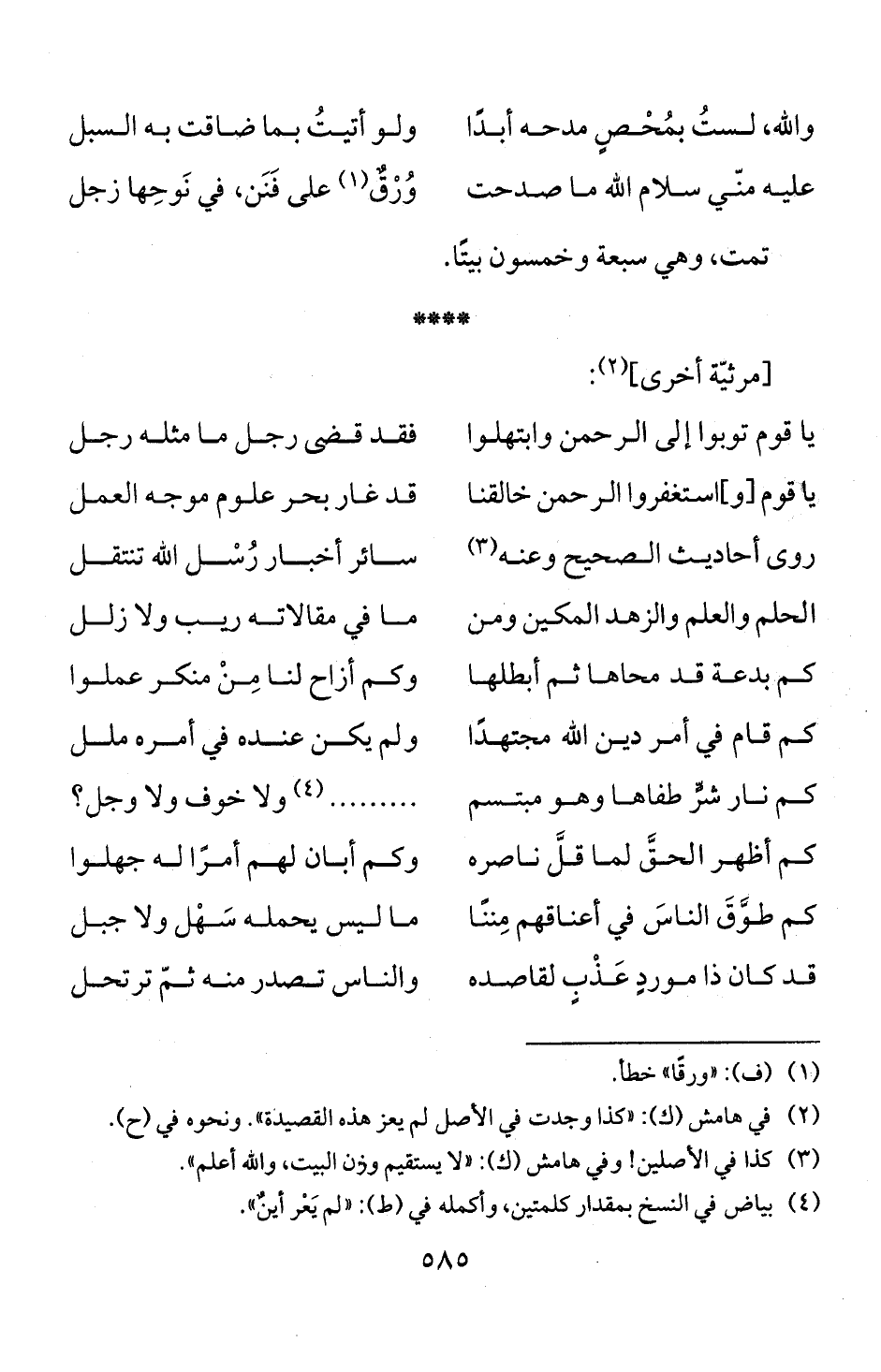 (3) كذا في الأصلين! وفي هامش (ك): " لا يستقيم وؤن البيت، والله أعلم ".