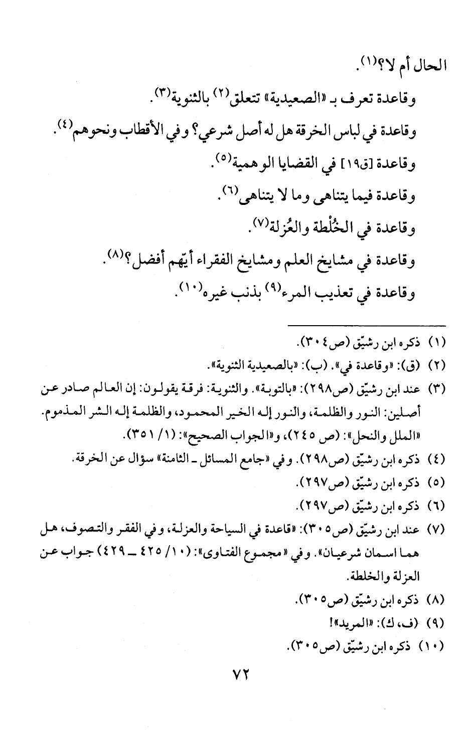عند ابن رشيق (ص 5 30): "قاعدة في السياحة والعزلة، وقي الفقر و [لتصوف، هل