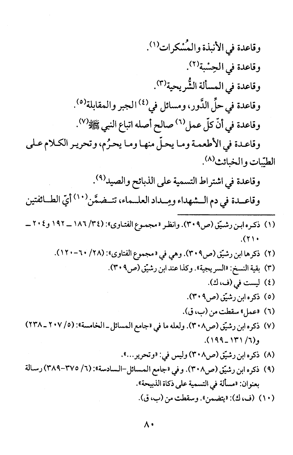 وقاعدة قي أن كل عمل (6) صالح أصله اتباع النبي! ش! م (7).