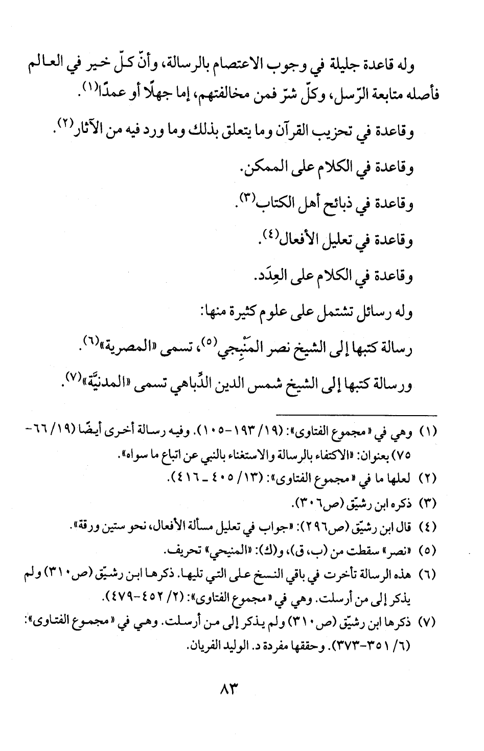 (1) وهي في " مجموع الفتاوى ": (9 1/ 93 1 - 5 0 1) 5 وفيه رسالة أخرى أيضا (9 1/ 66 -