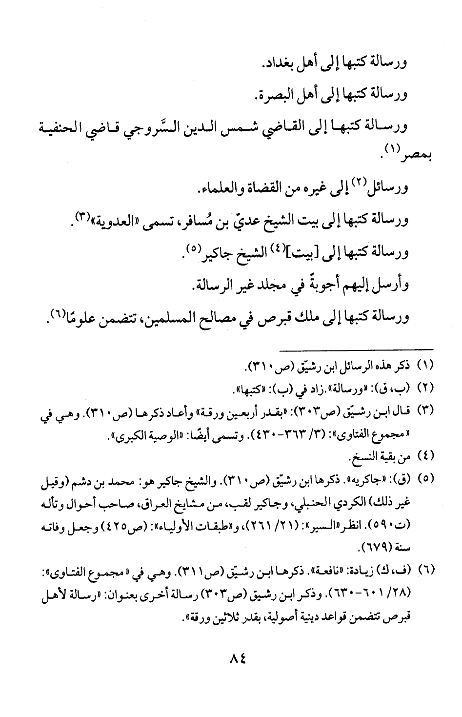 ورسالة كتبها إلى بيت الشيخ عدي بن مسافر، تسمى " العدوية " (3).