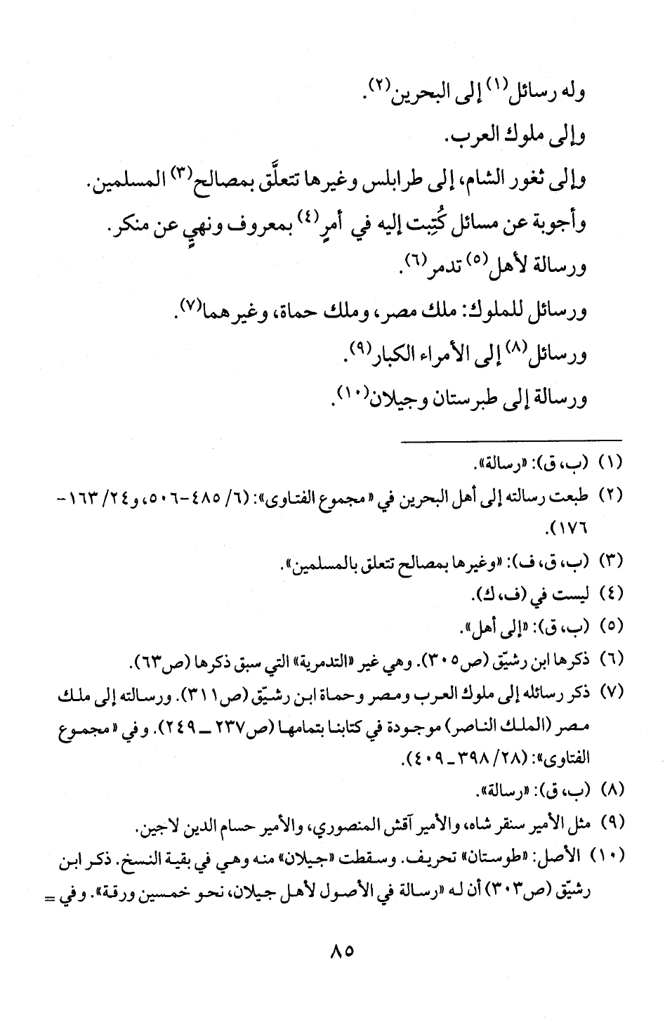 ورسائل للملوك: ملك مصر، وملك حماة، وغيرهما (7).