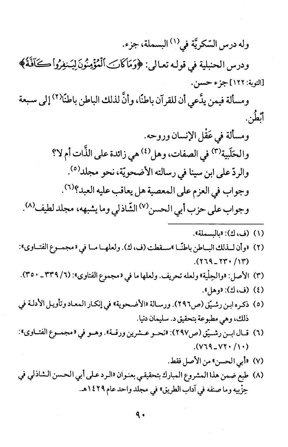 وا لحلبية (3) في الصفات، وهل (4) هي زائدة على الذات ام لا؟