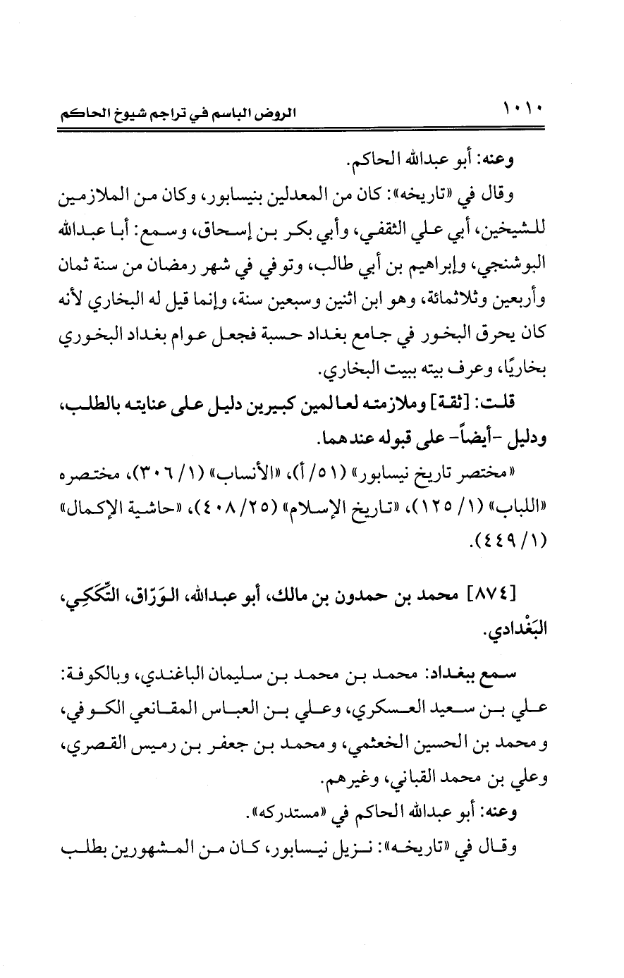 [874] محمد بن حمدون بن مالك، أبو عبد الله، الوَرّاق، التِّكَكِي، البَغْدادي.