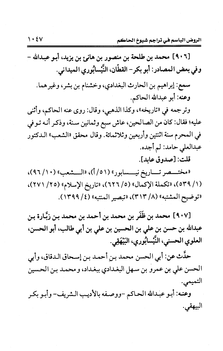[906] محمد بن طلحة بن منصور بن هانئ بن يزيد، أبو عبد الله -وفي بعض المصادر: أبو بكر- القطان، النَّيْسابُوري الميداني.