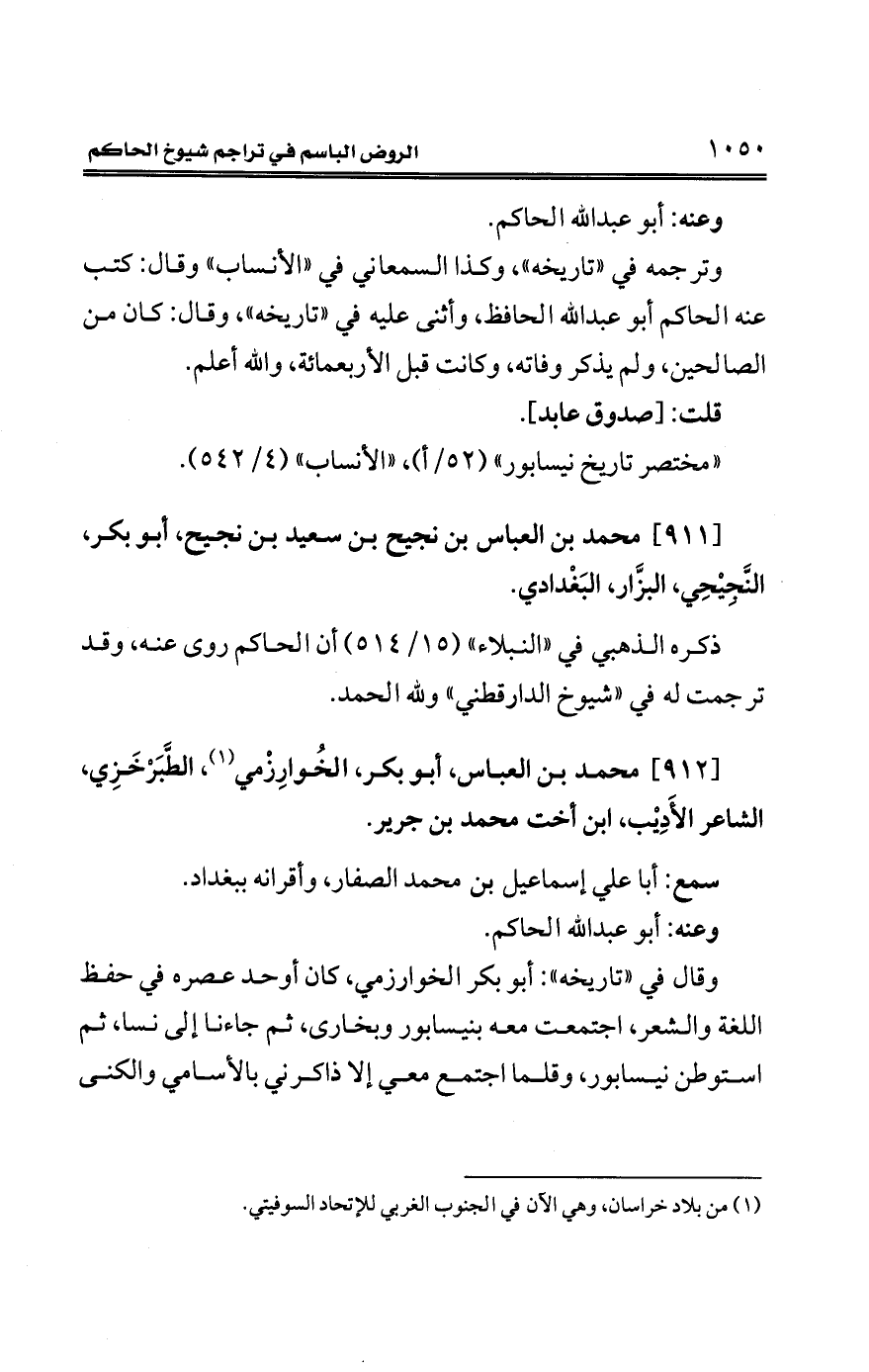 "مختصر تاريخ نيسابور" (52/ أ)، "الأنساب" (4/ 542).