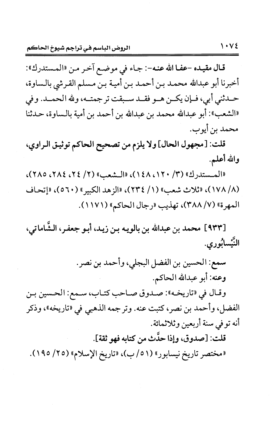 [933] محمَّد بن عبد الله بن بالويه بن زيد، أبو جعفر، الشَّاماتي، النَّيْسابُوري.