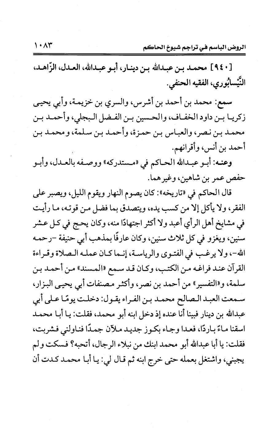 [940] محمَّد بن عبد الله بن دينار، أبو عبد الله، العدل، الزّاهد، النَّيْسابُوري، الفقيه الحنفي.