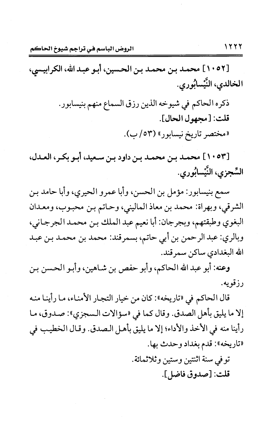 [1052] محمَّد بن محمَّد بن الحسين، أبو عبد الله، الكرابيسي، الخالدي، النَّيْسابُوري.