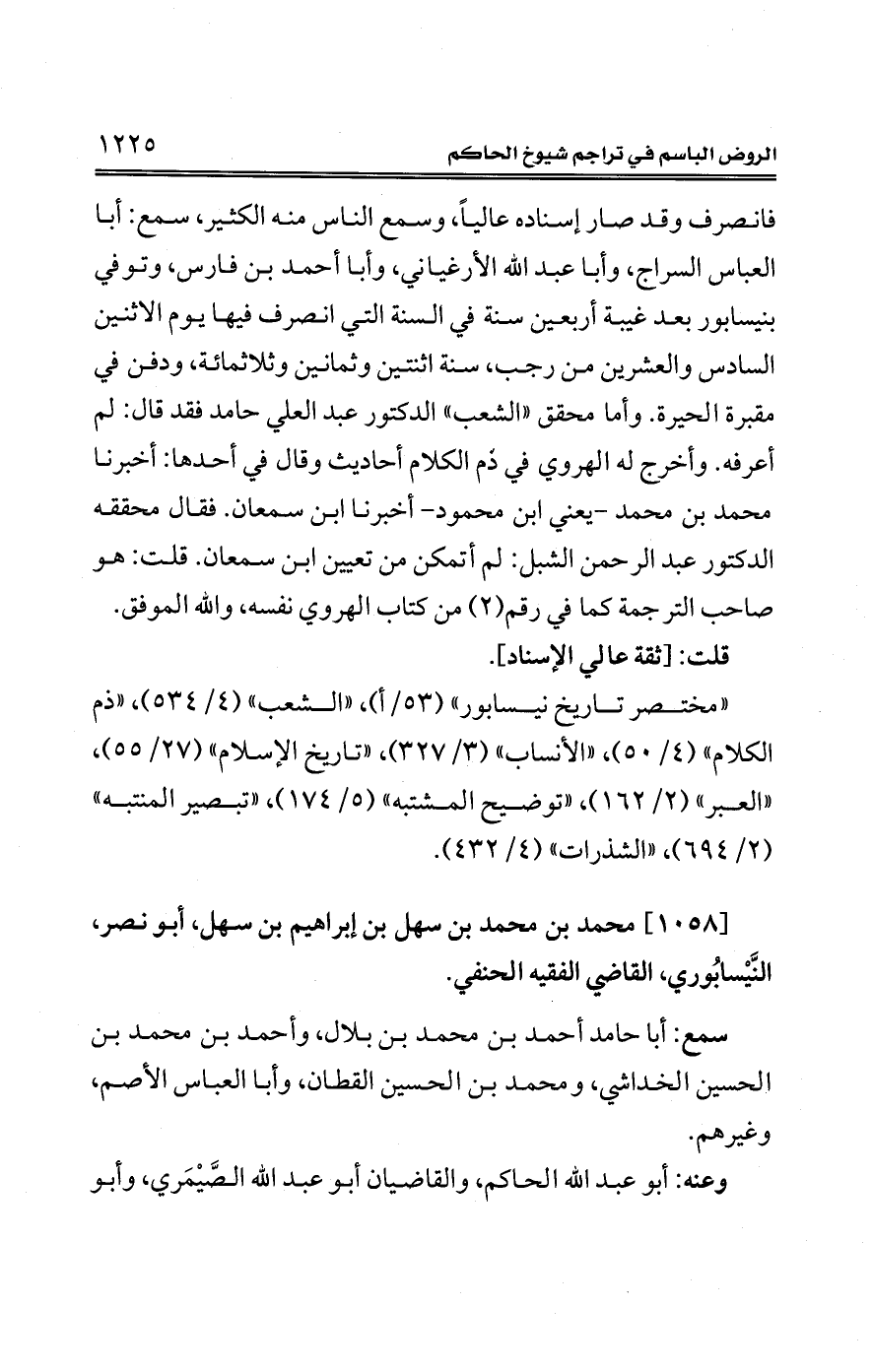 [1058] محمَّد بن محمَّد بن سهل بن إبراهيم بن سهل، أبو نصر، النَّيْسابُوري، القاضي الفقيه الحنفي.