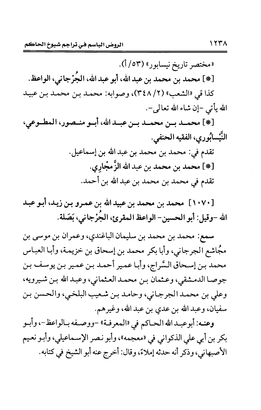 [1070] محمَّد بن محمَّد بن عبيد الله بن عمرو بن زيد، أبو عبد الله -وقيل: أبو الحسين- الواعظ المقرئ، الجُرْجاني، بَصَلة.