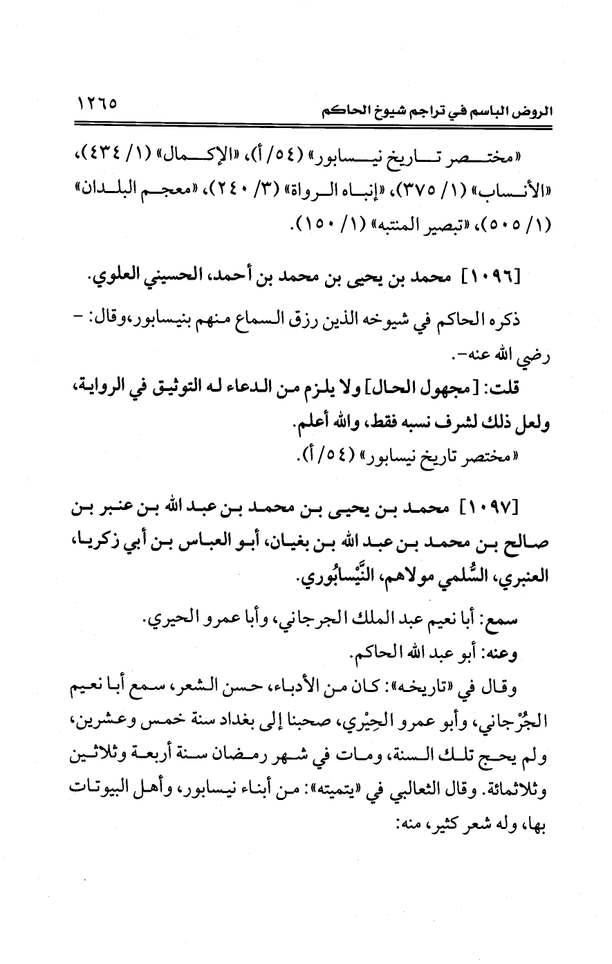 [1097] محمَّد بن يحيى بن محمَّد بن عبد الله بن عنبر بن صالح بن محمَّد بن عبد الله بن بغيان، أبو العباس بن أبي زكريا، العنبري، السُّلمي مولاهم، النَّيْسابُوري.