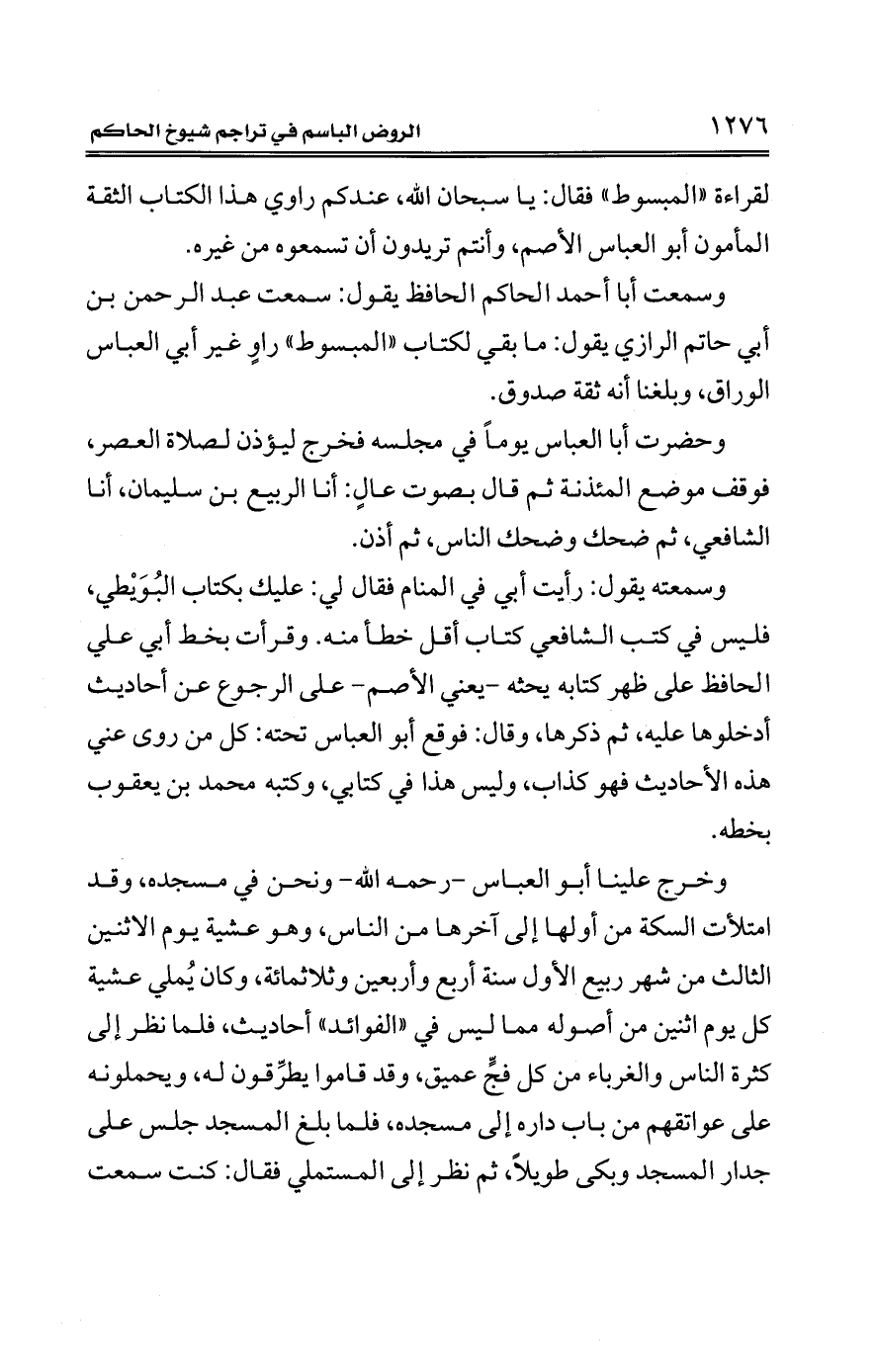 لقراءة "المبسوط" فقال: يا سبحان الله، عندكم راوي هذا الكتاب الثقة المأمون أبو العباس الأصم، وأنتم تريدون أن تسمعوه من غيره.