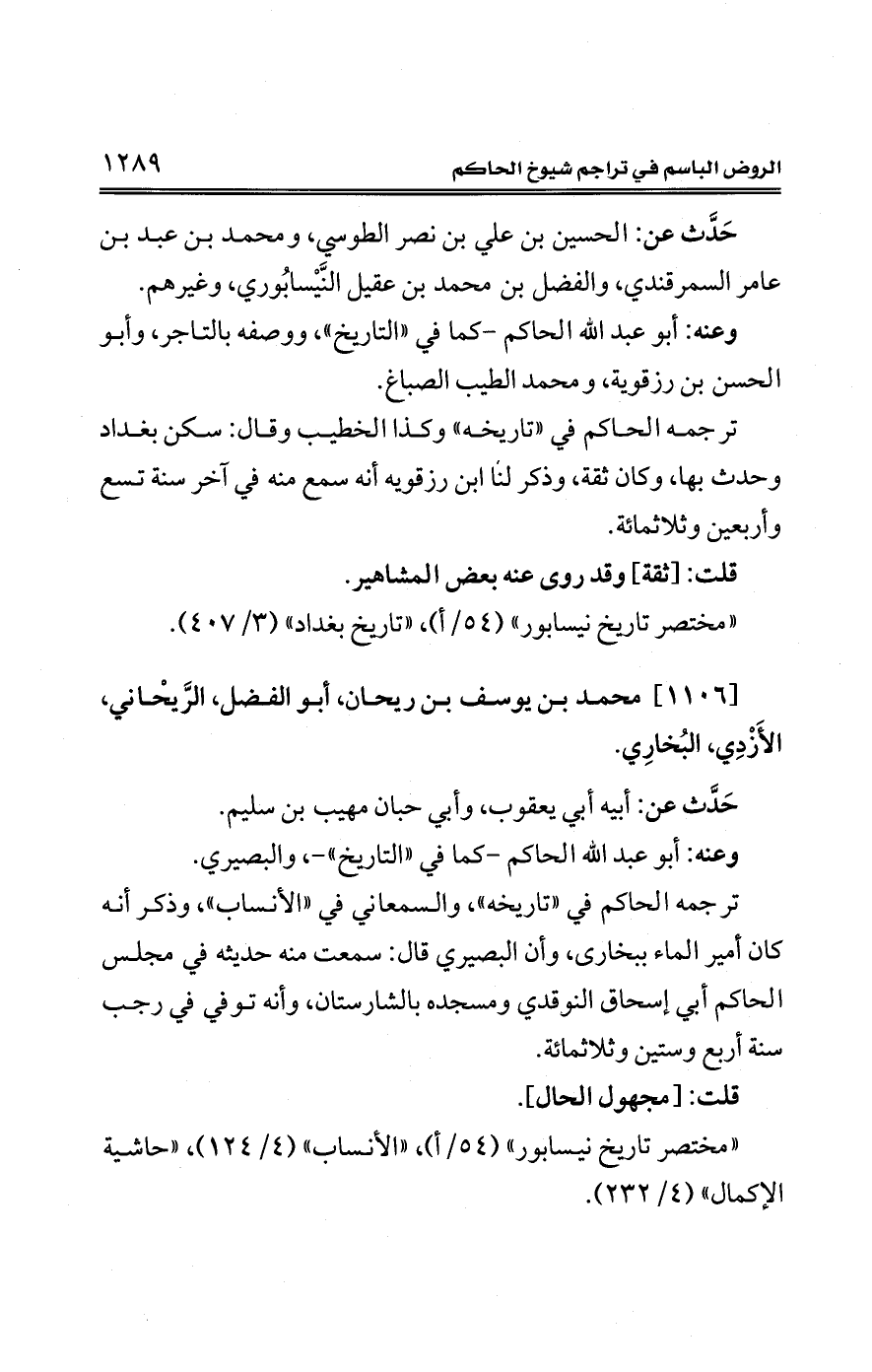 [1106] محمَّد بن يوسف بن ريحان، أبو الفضل، الرَّيحْاني، الأَزْدِي، البُخارِي.